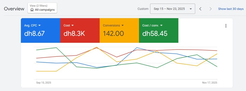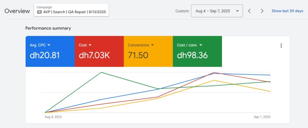 Google ads for tv installation services: We are managing Google Ads for this local business in the UAE. Their services are tv wall mount installation, dish tv installation and IPTV installation. We spend almost 4000 dirhams per month on their Google Search Ads which results in qualified leads and sales for this business. They get direct calls and WhatsApp messages from the prospects.